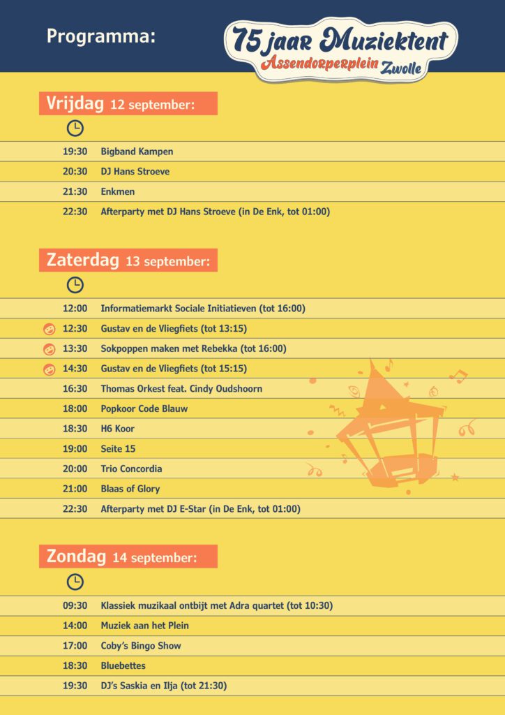 Het was enige tijd stil geweest, maar we zaten niet stil. Met een groep actieve vrijwilligers hebben we een super mooi programma kunnen neerzetten waar we trots op zijn! We hebben vele bands, artiesten, orkesten, koren, acts en kinderprogramma staan, met roots uit Assendorp, Zwolle en omgeving. Allen hebben een warm hart met de muziektent en het Assendorperplein.